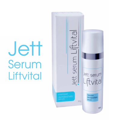 Lehké, neparfémované gelové sérum Jett serum LiftVital pro ženy, které se zajímají o estetiku a neponechávají svůj vzhled podléhat procesu stárnutí. Pro intenzivní regeneraci, hydrataci, pro jemné zesvětlení a sjednocení tónu pleti. Dokáže zklidnit pokožku a omezit tvorbu pigmentací. Při denním použití se dostaví cca do dvou minut liftingový efekt a při dlouhodobém používání můžeme pozorovat již po několika týdnech značné omezení tvorby vrásek.